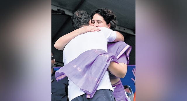KALPETTA: It was a day for emotions — love, integrity and family bonding— and not raw politics for Rahul and Priyanka Gandhi, who addressed a gathering at Gudalai in Wayanad on Wednesday before she filed her nomination papers for the November 13 Lok Sabha by-poll.