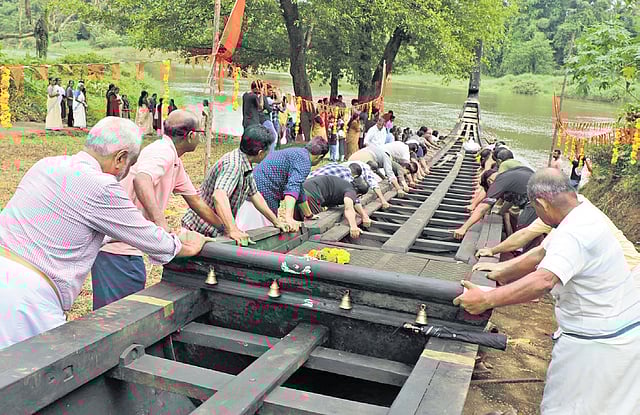 Poovathur Padinjaru built by Vishnu Venu Achary, is the third palliyodam reintroduced this year. According to tradition, as Onam makes its way, rituals begin as the Thiruvonathoni, which set off from Kattoor on the previous day, reaches the temple ghat early in the morning. The special boat, accompanied by a group of palliyodams, brings in provisions and vegetables for preparing the Onam feast.