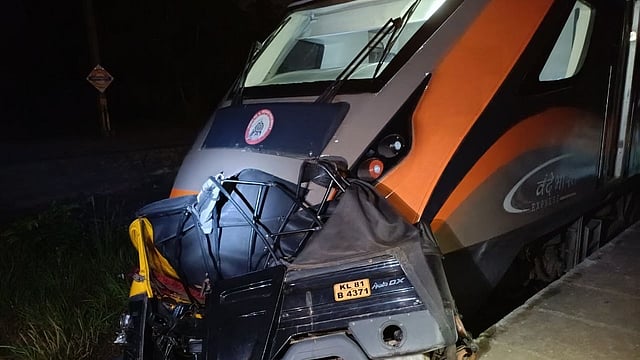 As the train approached at high speed, it hit the autorickshaw, completely crushing one side of it. Preliminary investigation suggests that the autorickshaw lost control before entering the platform area.The train was halted after the accident and services were restored after the autorickshaw was removed from the track. The Vande Bharat reached Thiruvananthapuram Central station about 1.5 hours late.