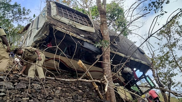 “The bus had veered off the road and plunged 70 ft down into a gorge on either side of the highway. Fortunately, it got stuck on a tree, thus a huge tragedy was averted,” an official said.