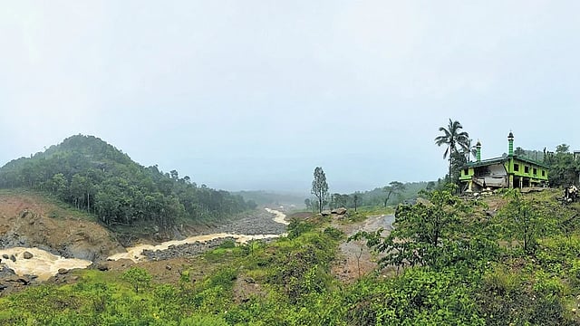 The water in the river has turned muddy due to incessant rain and the flow has increased compared to the previous day. While boulders are seen scattered on the river bed from Punchirimattam to Chooralmala, the rocks have been cleared in the downstream areas of the Bailey bridge. The tea factory at Mundakkai is the only place with human presence.