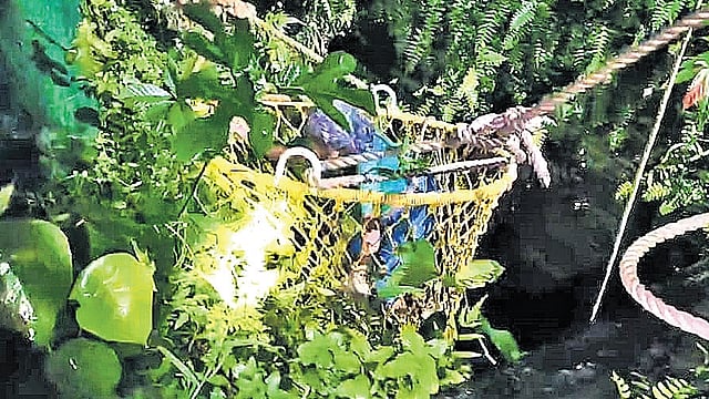 The rescuers worked meticulously to ensure Shantha, who was brought up in a net, was safe after being trapped for several hours.