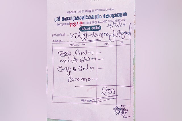 At the Shree Mahabadrakali temple in Kottagal, Pathanamthitta, special ‘shatru samhara poojas’--a ritual aimed at neutralising threats—have been ongoing for the last week. Receipts for the pooja booked at the temple are going viral like many other similar receipts from various temples in the state.