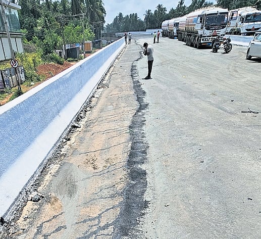 “The concrete pieces, though small, could have led to a major accident. Luckily, the biker escaped. We informed the highway officials and the construction firm about the crack and water leak, but they termed it a normal matter,” said Suresh Palora of Ambalapadi.