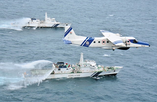 The Coast Guard’s Offshore Patrol Vessels ICGS Saksham, ICGS Vikram and ICGS Samarth utilised infrared cameras to detect the oil spill area and sprayed OSD (Oil Spill Dispersant) to contain the spread. A Dornier aircraft is conducting aerial assessment and OSD dispersal in the 2x1 nautical miles area where the spill has been detected. The vessels are churning the waters using hoses and propeller to mix the dispersant.