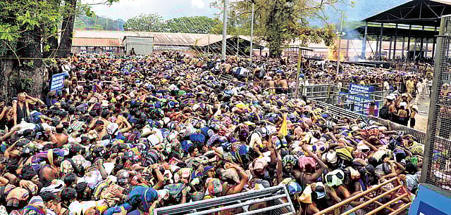 In previous years, only 40,000 to 50,000 pilgrims visited the hill shrine per day in the initial days of the season, authorities said. The serpentine queues moved at a snail’s pace with devotees taking six to seven hours to reach the nadappanthal from Pampa. Once the nadappanthal became choked, those who had completed darshan struggled to exit.