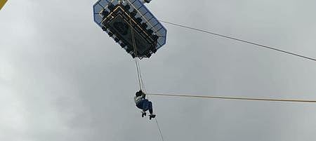 IDUKKI: A four-member family from Kozhikode, currently residing in Mangalore, had a narrow escape after getting stranded 125 ft above ground at a sky-dining restaurant in Anachal near Adimali on Friday.