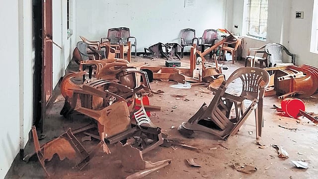 In Mayyil town, the Congress office, Gandhi Bhavan, was vandalised by unknown miscreants in the late hours of Thursday. The attack intensified tensions in the area, with Congress leaders accusing CPM workers of the carrying out the deed. A UDF booth agent, P Bhaskaran, was also assaulted and his house attacked in what appeared to be a coordinated attack.