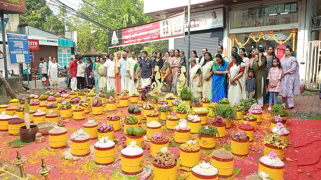“The arrangement of 101 para itself is a treat to the eyes as it includes everything, like fruits, vegetables and flowers, as an offering to Thiruvambady Bhagavathi,” Ramdas Vallathol, the grand nephew of Vallathol Narayana Menon, told TNIE.