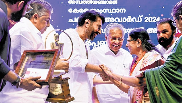 The 2024 State Film Awards were presented by Chief Minister Pinarayi Vijayan. The JC Daniel Award, the highest film honour of the state government carrying a cash prize of Rs 5 lakh along with a citation and sculpture, was presented to Sarada. Presenting the jury report, chairman Prakash Raj shared a personal moment, recalling his association with Sarada three decades ago. Calling it a beautiful moment to witness Malayalam cinema honouring Sarada’s body of work, he said he felt privileged to be on the stage for the occasion.