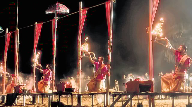 The ‘Magha Mela’ venue on the banks of the Bharathapuzha, also known as the Nila, has seen a steady flow of diverse visitors. Devotees line up in long queues to cross the river and participate in rituals rooted in Vedic thought, tantra, local devotional practices and tribal traditions. Another major draw has been the Nila aarti, performed by a 15-member team from Varanasi.