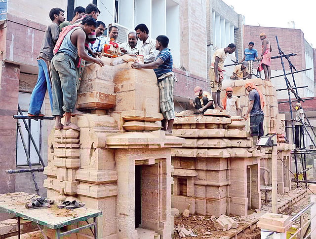 It is against this background that the State Archaeology wing in collaboration with the Integrated Coastal Zone Management Project is organising a capacity-building programme for 35 artisans from different parts of the State, who work exclusively on temples and restoration work of historic monuments. Five master craftsmen are training these artists in nuances of Shilpa Shastra and Odishan style of temple architecture. As a part of the workshop, that was inaugurated in the last week of September by eminent sculptor of Odisha Raghunath Mohapatra, the trainee artisans are building three temples in the three distinct temple building styles of Odisha. These three forms are Rekha, Pidha and Khakara. They are working on Khondolite stone which was a popular medium in the ancient times.