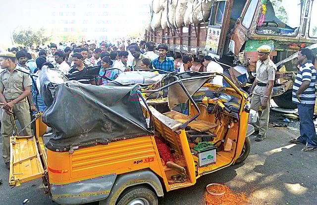 The accident took place when the overloaded auto-rickshaw carrying 18 passengers collided with the truck loaded with cotton coming from the opposite direction.