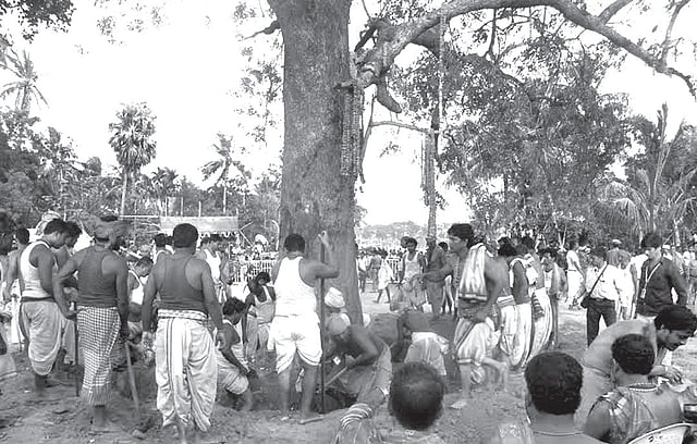 On Sunday, the Daitapatis will collect the log to be trimmed into a specific dimension for making the idol. The remains of the holy tree will be buried in a large ditch dug in the vicinity.