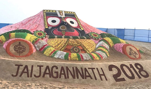 BHUBANESWAR: Acclaimed sand artist Sudarsan Patnaik and his students have made what is billed as the world’s biggest sand sculpture of Lord Jagannath at Puri beach on Sunday, to welcome the New Year.