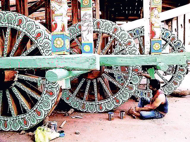 BARIPADA: Ahead of the world-famous car festival of Lord Jagannath in Puri, tribals of Similipal Biosphere Reserve in Mayurbhanj district on Monday pulled the chariot at Gudialbandh village on the occasion of Deba Snana Purnima.