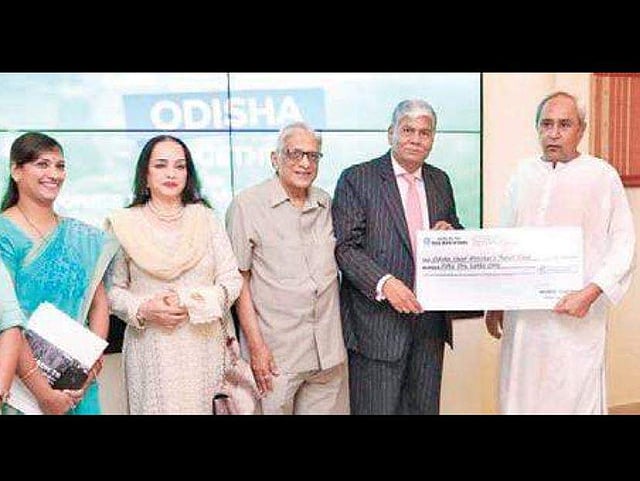 Vice-Chairman of WTC-Mumbai, Vijay Kalantri; Director General YR Warerkar and Senior Director Rupa Naik handed over the cheque to Chief Minister Naveen Patnaik.