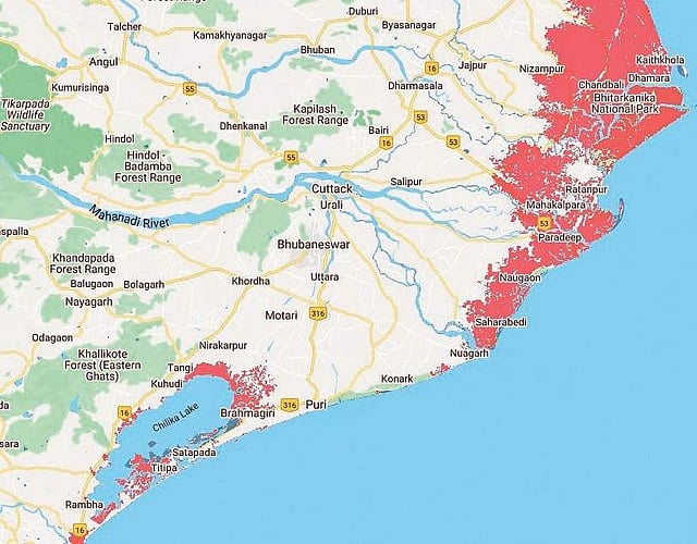 The organisation’s projection maps show that a number of important coastal eco-systems such as Bhitarkanika National Park, Balukhand-Konark Wildlife Sanctuary, Chandrabhaga beach and areas surrounding Chilika lake may submerge or face permanent inundation due to increasing level of global sea levels, which has been projected to rise between 2 and 7 feet, and possibly more, in the next three decades.