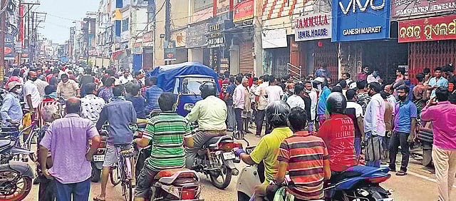 A day after the district administration enhanced lockdown timing on weekdays, people in large numbers thronged various market places in Berhampur violating the social distancing norms. Many including shopkeepers were also found without face masks. Sources said lack of police deployment led to the overcrowding. Ganjam Collector Vijay Amruta Kulange on Sunday announced that along with the complete shutdown on Saturdays and Sundays, markets will be allowed to remain open only from 7 am to 12 noon on the rest of the days. No vehicles will be allowed to ply on roads from 12 noon to 7 am except ambulances. People will not be allowed to come out of their homes during these 19 hours. On the day, Berhampur Sub-Collector SD Bhausaheb sealed a market complex having shops dealing with non-essential commodities. The sealed shops would be penalised and allowed to open after June 30, said an official.