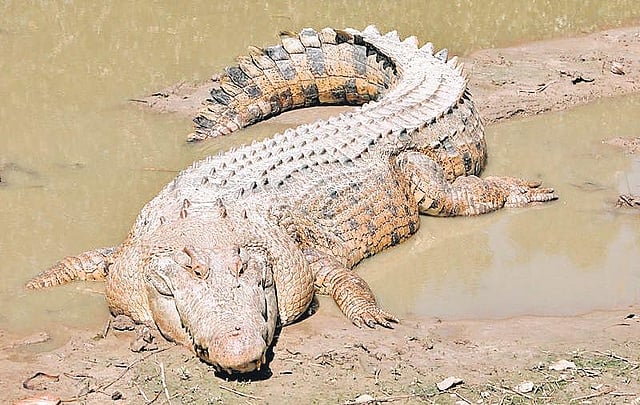 Sources said villagers of Devidola on Saturday spotted the reptile while bathing in the river in the morning.