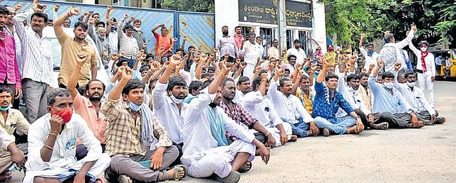 BHAWANIPATNA/JEYPORE: Unable to get their names registered for selling paddy, farmers under Khairapadar Primary Agriculture Cooperative Society (PACS) of Kalahandi district staged dharna in front of the PACS office here on Thursday.
