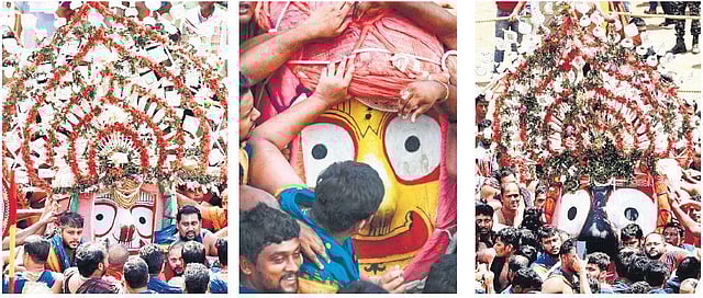 PURI: As if the deities could not wait any longer to return to Srimandir, the chariots of Lord Jagannath, Lord Balabhadra and Devi Subhadra reached Simhadwar on Bahuda Yatra three hours ahead of schedule on Saturday amid a congregation of devotees.