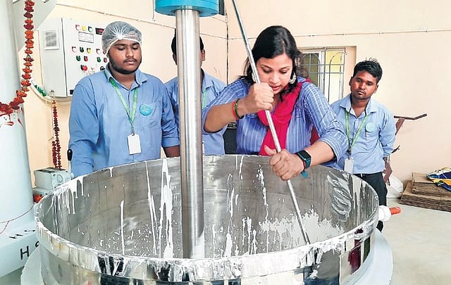Through her startup, Durga procures cow dung at Rs 5 per kg from local dairies, providing an additional income to the dairy farmers. The move has helped in curbing abandoning or trading of cattle which have stopped producing milk.In the last six months, Durga has managed to sell over 10,000 litres of paint from her plant here in Ambapali.