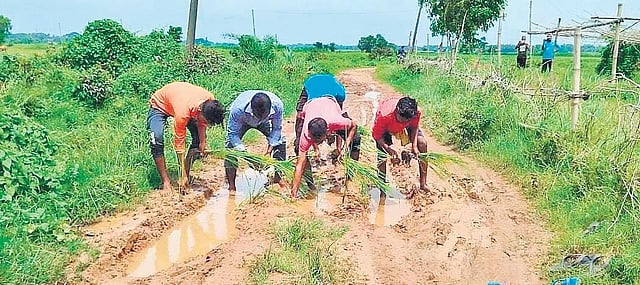“Officials and elected representatives come to our village during elections but do not fulfil their promises to construct proper roads. Since the muddy road is perfect for paddy transplantation, we decided to grow paddy on the stretch,” remarked villagers Umesh Lenka, Kailash Sahoo, and Soumyaranajn Lenka.