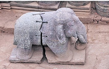 According to officials, among the most striking finds is a broken monolithic elephant, an imposing structure measuring five feet in length and over 3.5 feet in height.
