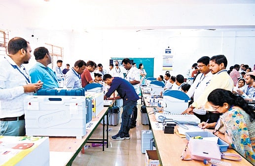 Meanwhile, after completion of the second phase of EVM randomisation, commissioning of EVMs began on Wednesday. The commissioning is being done at BJB Autonomous College, Prananath College, among other places.