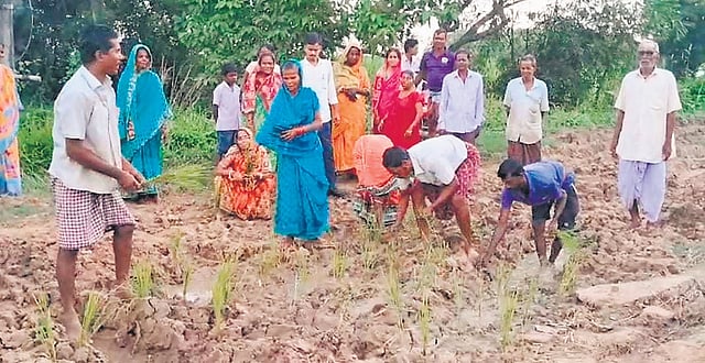JAGATSINGHPUR: Residents of Sankarshai in Balikuda block transplanted paddy saplings on a muddy road leading to their village to protest the administration’s apathy towards improving connectivity in the area.
