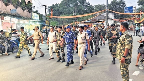 The security setup includes five companies of BSF, two companies of CRPF and three companies of RAF. Overall 58 platoons of forces will be deployed throughout the city. Ahead of the festival, a flag march was conducted on Saturday evening through sensitive areas in the city, led by IG (northern range) Himanshu Lal and SP Mukesh Bhamoo.