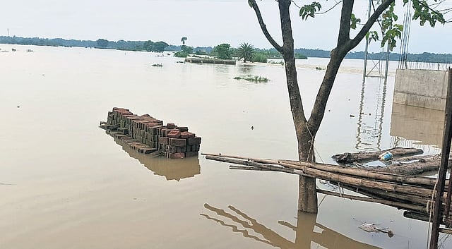BALASORE: Residents of low-lying areas in Bhograi, Baliapal, Basta and Jaleswar blocks of Balasore district are in a state of panic as water level in Subarnarekha river continues to rise after breaching the danger mark. The situation worsened from Saturday night after Jharkhand opened 13 gates of Galudihi barrage to release excess water, leading to flooding in nearly 60 villages across 22 gram panchayats in the district on Sunday. Currently, the river is receiving 5,400 cubic feet of water due to the barrage release and two days of incessant rain.