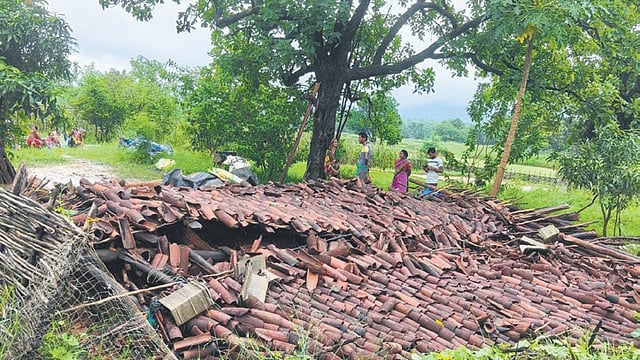 Masjidpada residents said rainwater entered at least 30 houses, damaging household articles. Due to heavy rain, the Khamaripada Pond road was also partially damaged.