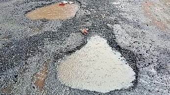 As the blacktop peels away, large potholes and sunken patches have emerged across the city, posing danger to commuters. The damaged stretches have triggered a series of accidents, particularly affecting two-wheeler riders and school-going children, and led to severe traffic snarls.