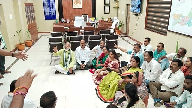 During the protest which was held in absence of collector Aditya Goyal, a minor confrontation reportedly broke out between the Bargarh Town IIC and Bariha after police tried to evict the agitators from the office.