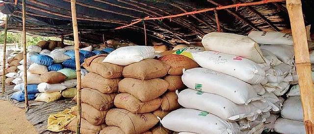 BARGARH: Farmers on Tuesday blocked NH-53 at Godbhaga demanding immediate lifting of paddy bags lying unattended at mandis in Attabira block.