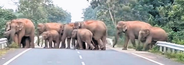 Sources said the herd comprises seven females, a tusker, eight calves and a Makhana (transgender elephant). On Tuesday evening, vehicular movement along the Athagarh-Munduli road near Dalakhai temple was disrupted as the jumbos were moving towards Rajanagar, Bentapada and Mahakalabasta areas by crossing the stretch. On getting information, forest officials rushed to the spot to ensure there was no untoward incident.