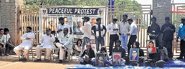 The agitating students sought strict implementation of reservation policy in fee waivers during admission, covering both academic and hostel costs. They demanded that pending mess dues be deferred until scholarship amounts are disbursed.