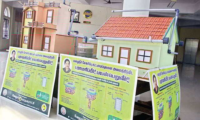 Corporation Commissioner P Janaki Raveendran said that several steps had been taken by the Corporation to ensure the installation of rainwater harvesting structures system in the buildings in the city, ahead of the rains. After the RWH systems were installed, the Corporation posted stickers to identify the buildings. This helped officials monitor implementation of the programme, she added.