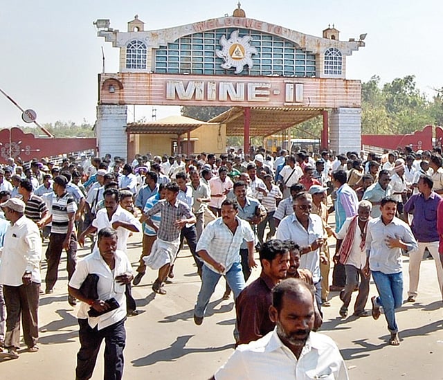 The angry crowd retaliated by attacking the CISF personnel, who had to seek refuge in Mine-II. Later, the Tamil Nadu police strike force was rushed to the spot. Rajkumar’s relatives started arguing with the police officers and demanded the constable’s arrest. Following a heated exchange, the strike force resorted to lathicharge. Both sides pelted stones resulting in injuries. The strike force, however, was no match for the angry crowd, which gained the upper hand and moved towards the entrance. They also set the CISF room at the main entrance on fire.