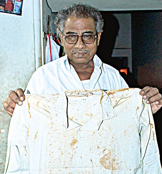 On a postcard he wrote to his relative Singaram on February 20, 1965, Shanmugham, starting with a slogan ‘Tamil Dhrogikal Ozhiga’ (Down with those who betray Tamil) said, “One can learn Hindi or any other language. But if that language tries to wipe out Tamil and rule over our language, no one can accept it.” He also scored out the Hindi words printed on that post card and wrote ‘Hindi Ozhiga’ (Down with Hindi) on top of the stamp. Shanmugam was 22 and had studied up to Class V. “I was running a tea shop near our house at Viralimalai. Shanmugam was working in a grocery shop. Before Shanmugam, six others had sacrificed their lives during 1964 and 1965. Shanmugam and his friends, who were members of the MGR Mandram, put up protests at Viralimalai to pay homage to those martyrs and held a rally,” he recounts. Manickam, who has preserved Shanmugam’s paint-stained shirt, says: “His shirt was stained with paint as he often wrote anti-Hindi slogans on vehicles and walls.”