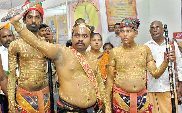 CHENNAI: In the midst of the bustling Hindu Spiritual and Service Fair, a group of four managed to catch everyone’s attention as they paraded in all their glory. The group, three men and a young boy, were dressed in their traditional attire, while the group head held a sword and performed a type of martial art, the others also held weapons such silambattam sticks.