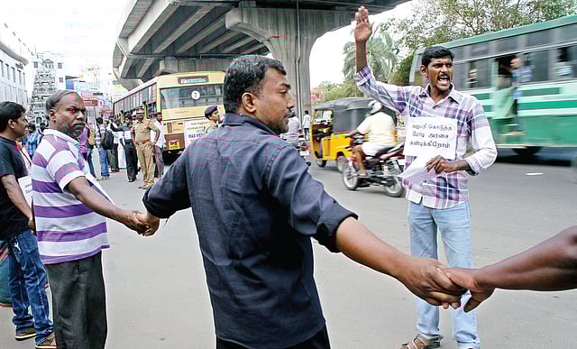 Not just the Cauvery, issues related to the Siruvani dam were also the highlight of the day as almost 100 members from various political parties and farmers associations organised a human chain protest in Coimbatore demanding that the Kerala government dropped its plan to construct a gravity dam across the Siruvani, a sub-tributary of the Cauvery.