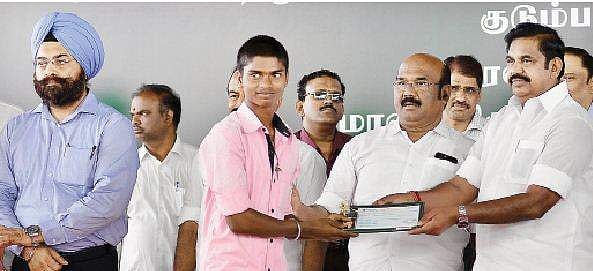 Each family received cheque for `5,000 from the chief minister at a public function held at RK Nagar.  Families of 10 fishermen who had lost their lives during cyclone Vardah and families of eight fishermen who had lost their lives due to various reasons received an assistance of `1 lakh each from the chief minister.