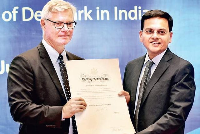 Vijay Sankar, Deputy Chairman of Sanmar Group, was presented with official credentials from the Queen of Denmark by the Ambassador. Succeeding his father who was the Honorary Consul for South India for 28 years, Sankar will be looking after the consular activities across Tamil Nadu, Andhra Pradesh, Telangana, Kerala, Karnataka and Puducherry.