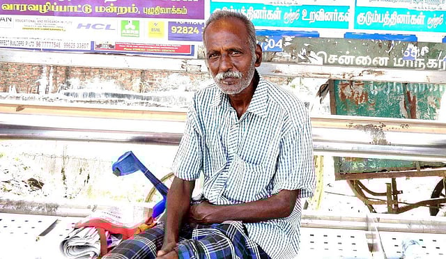 CHENNAI : Wearing a shirt that has seen better days, 65-year-old S Balu sits at a bus stop in Adambakkam.