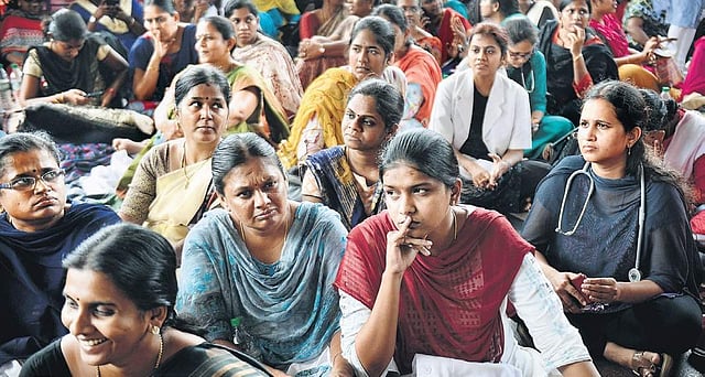 Hundreds of doctors assembled at the Rajiv Gandhi Government General Hospital campus, to stage a protest to highlight their four-point charter of demands which included pay hike. Patients health care services across the districts were hit after government doctors went on a one- day strike, excluding emergency and casualty services.