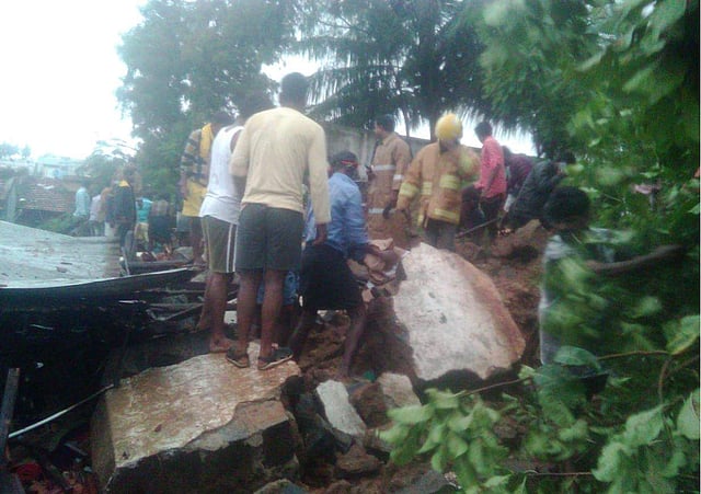 According to sources, a big compound wall located adjacent to these three houses collapsed and fell on them after the incessant rains.