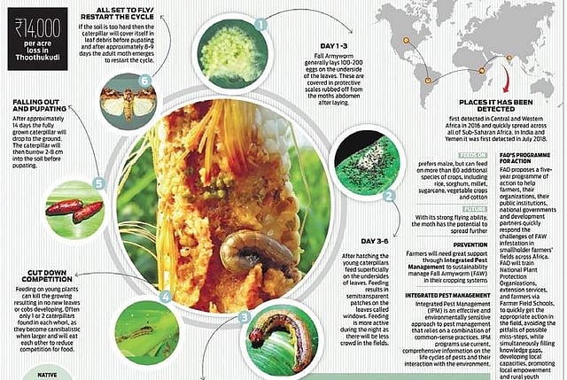Conservative estimates suggest Tamil Nadu lost a whopping 11 lakh metric tonnes of maize crop to the pest last year. Experts say FAW can travel up to 100 km per night and feeds on a range of 80 crop varieties, ranging from maize to sugar cane. This, they say, explains the quick spread of the pest across India.